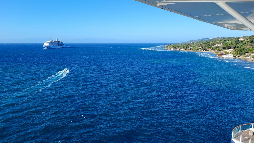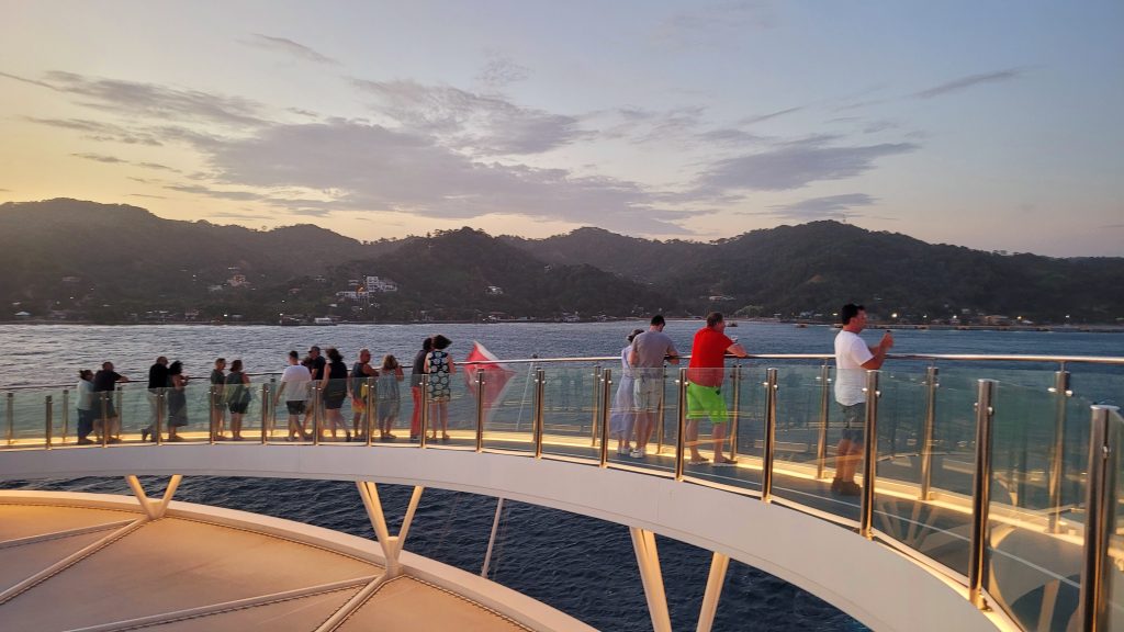 Wir genießen am Abend das Auslaufen aus Roatan.