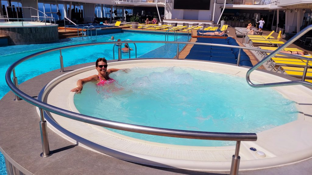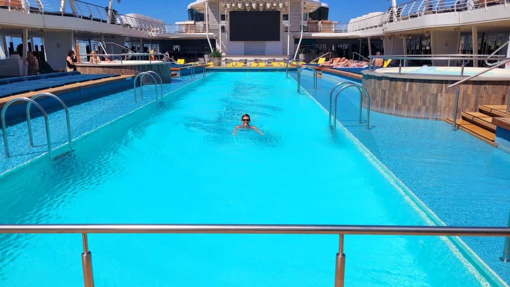Es gibt sie tatsächlich, die Momente, an denen man die Poollandschaft trotz der über 2.000 Gäste an Bord ganz für sich alleine hat. Ich genieße es sehr.