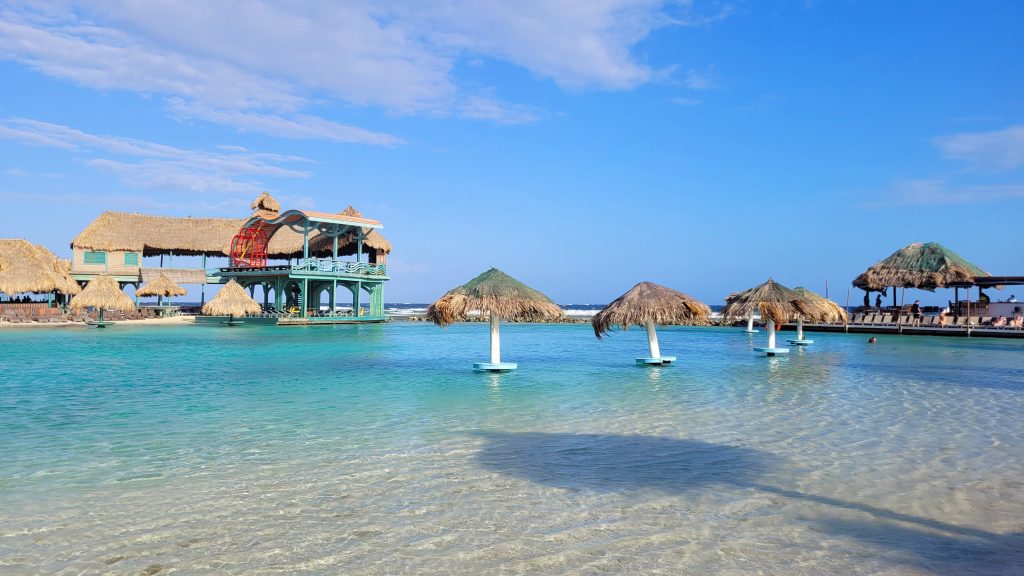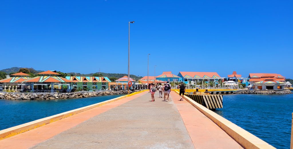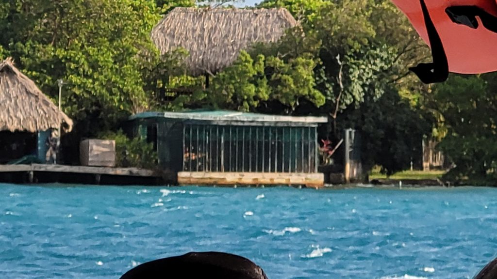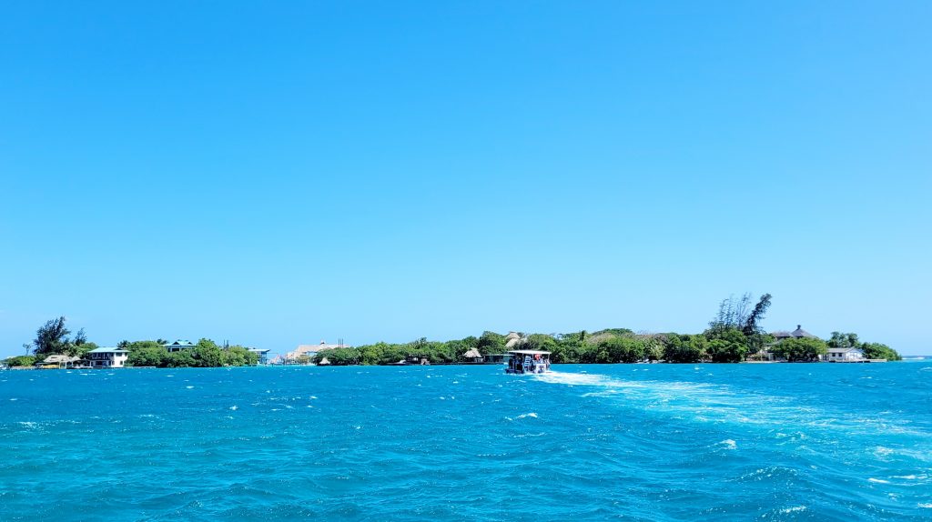 Schon vom Schiff aus sehen wir, dass vor der Insel tolle Gesteinsformationen liegen. Das sieht vielversprechend aus, denn wir haben für heute einen Schnorchelausflug zum Mesoamerican Barrier Reef, dem zweitgrößten Riff der Welt, gebucht.