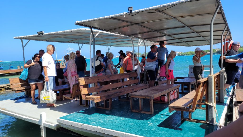 Mit dem Bus fahren wir ca. eine halbe Stunde und steigen dann um auf kleine Boote, die uns zur Insel Big French Key bringen werden. Da der Wind nach wie vor recht heftig weht, sind wir gespannt, ob unser Schnorchelausflug wie geplant stattfinden wird.