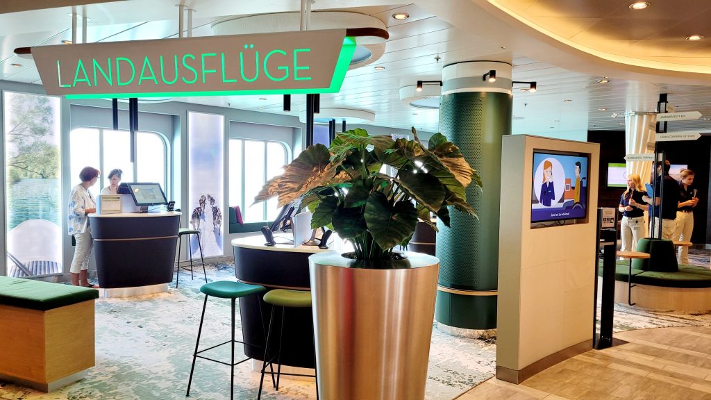 Ebenfalls dort zu finden: die Abteilung, die für Landausflüge zuständig ist.