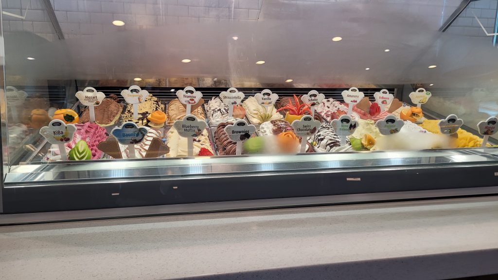 … oder sich an der Eistheke bedienen lassen. Das Eis schmeckt hervorragend.