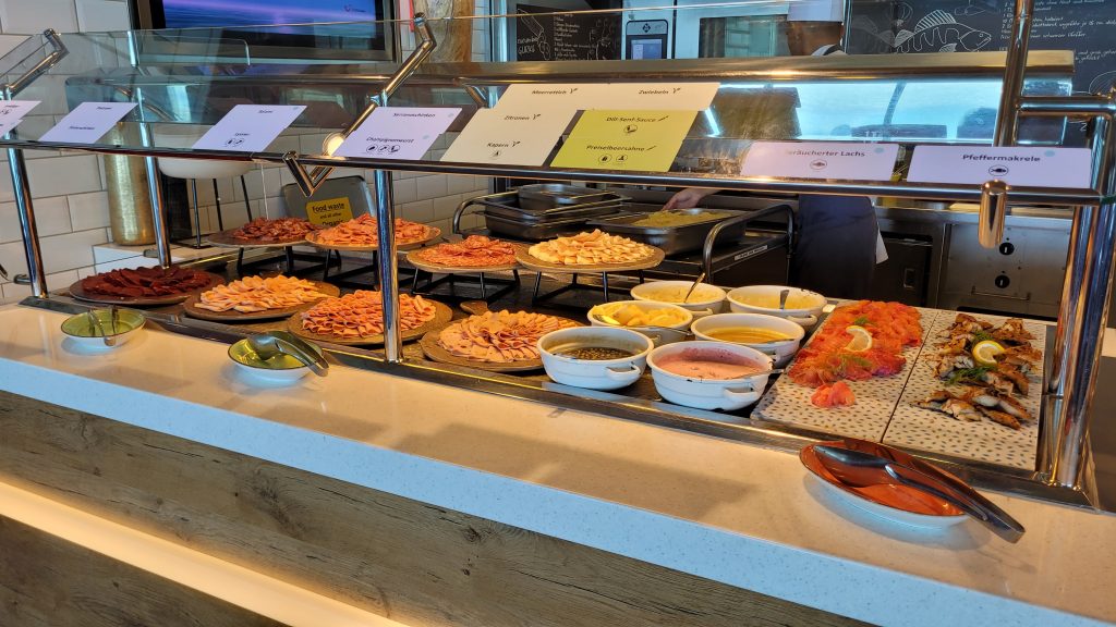 Es ist ein Buffet-Restaurant mit einem umfangreichen und guten Speisenangebot. Auch Vegetarier und Veganer kommen hier voll auf ihre Kosten. Alles ist sehr gut ausgewiesen.