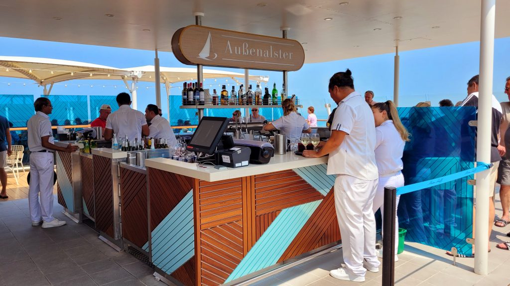 Darüber auf Deck 14 (ein Deck 13 gibt es nicht) befindet sich die Außenalster, eine schöne, luftige Bar.