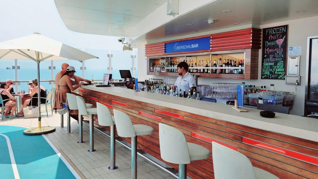 Eine weitere Freiluftbar auf Deck 14 – die Überschaubar. Sie wird vor allem von den Sonnenanbetern auf dem Sonnendeck genutzt.