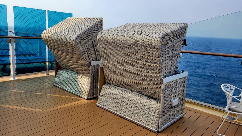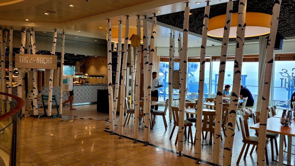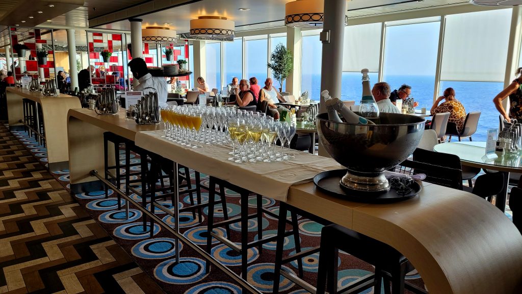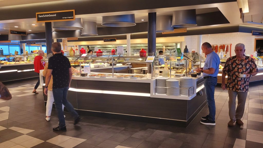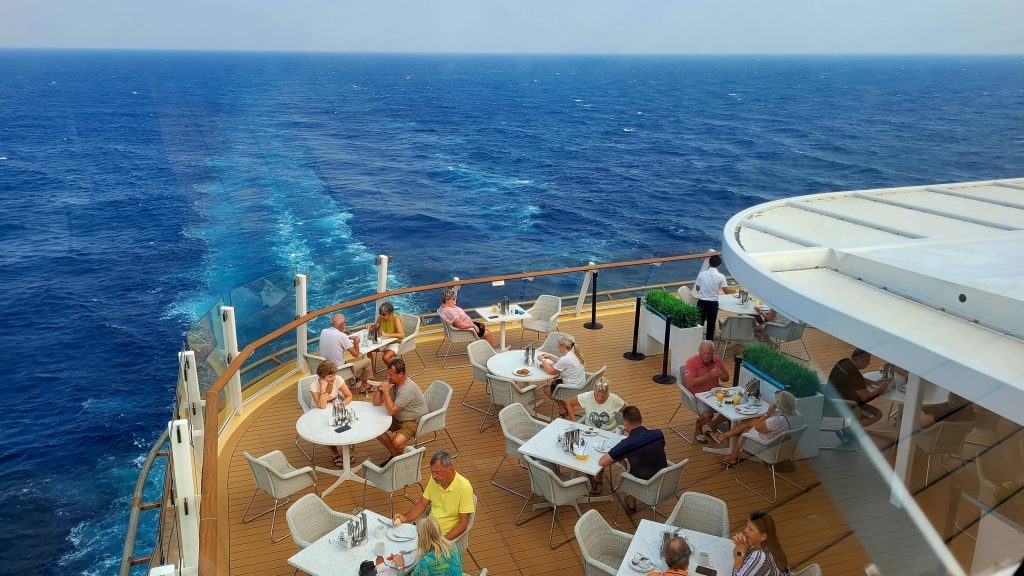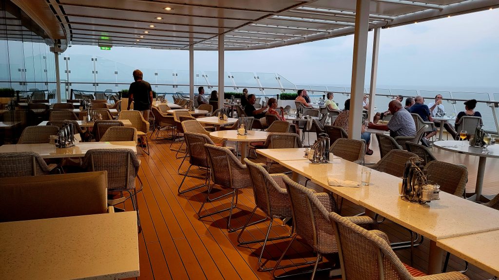 Direkt über uns auf Deck 12 befindet sich das Restaurant Anckelmanns Platz, das einzige Restaurant mit Außenterrasse. Wir lieben es, die Mahlzeiten bei diesen wunderbaren warmen Temperaturen im Freien einzunehmen, deshalb ist es unser Lieblingsrestaurant.