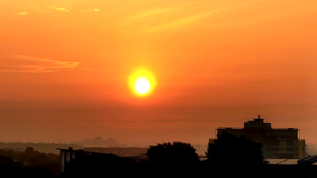 Der Tag begrüßt uns mit einem wunderschönen Sonnenaufgang.