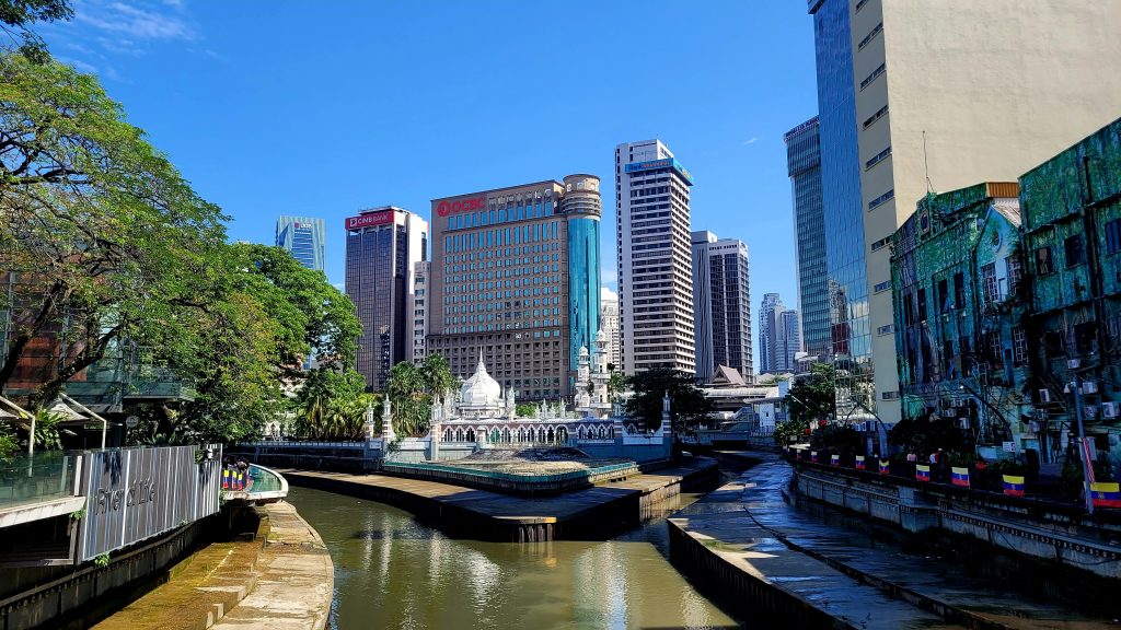 Unser Weg führt weiter an eine Stelle in der Stadt, die uns fasziniert. Hier erhielt Kuala Lumpur seinen Namen. Zwei Flüsse fließen hier zusammen, so dass es eine schlammige Flussmündung gab, übersetzt Kuala Lumpur.