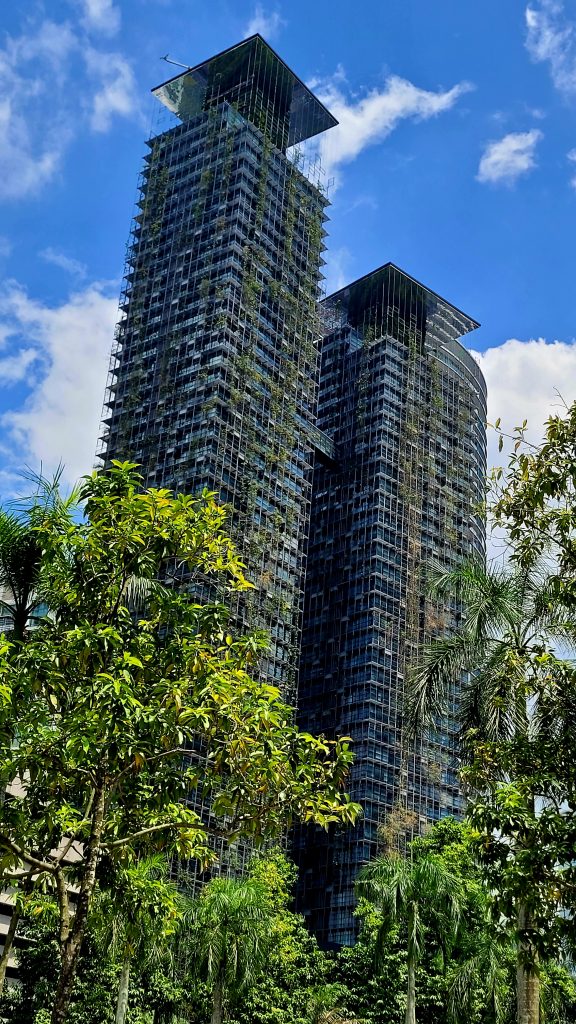 Unmittelbar daneben stehen sehr moderne, ökologisch bepflanzte Hochhäuser. Sehr beeindruckend.