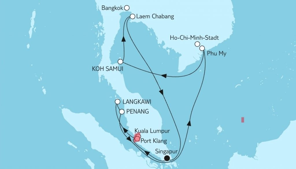 Unser Ziel nach Singapur ist Malaysia. Wir laufen den Hafen Port Klang an und haben einen Ganztagsausflug in die 50 km entfernte Hauptstadt Kuala Lumpur gebucht.