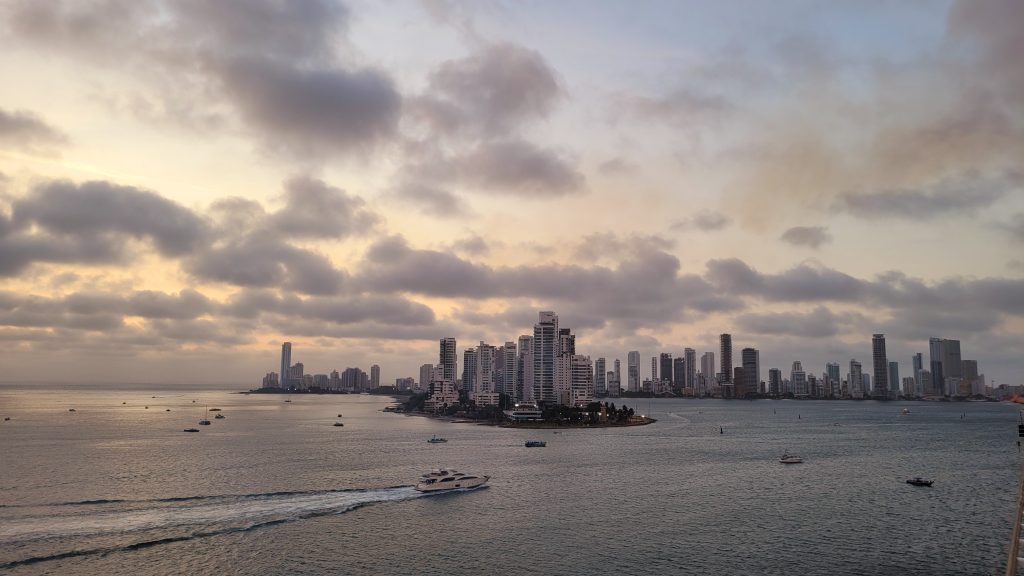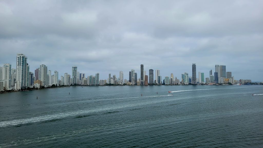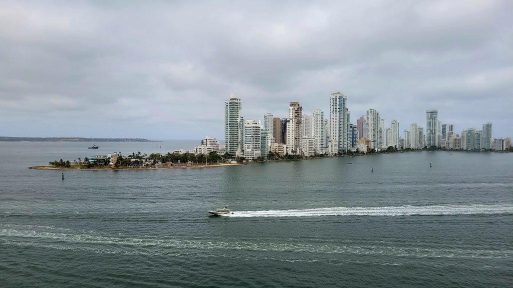 Am Morgen laufen wir in Cartagena / Kolumbien ein. Es macht Spaß, die Einfahrt zu verfolgen, denn die Stadt hat eine tolle Skyline.