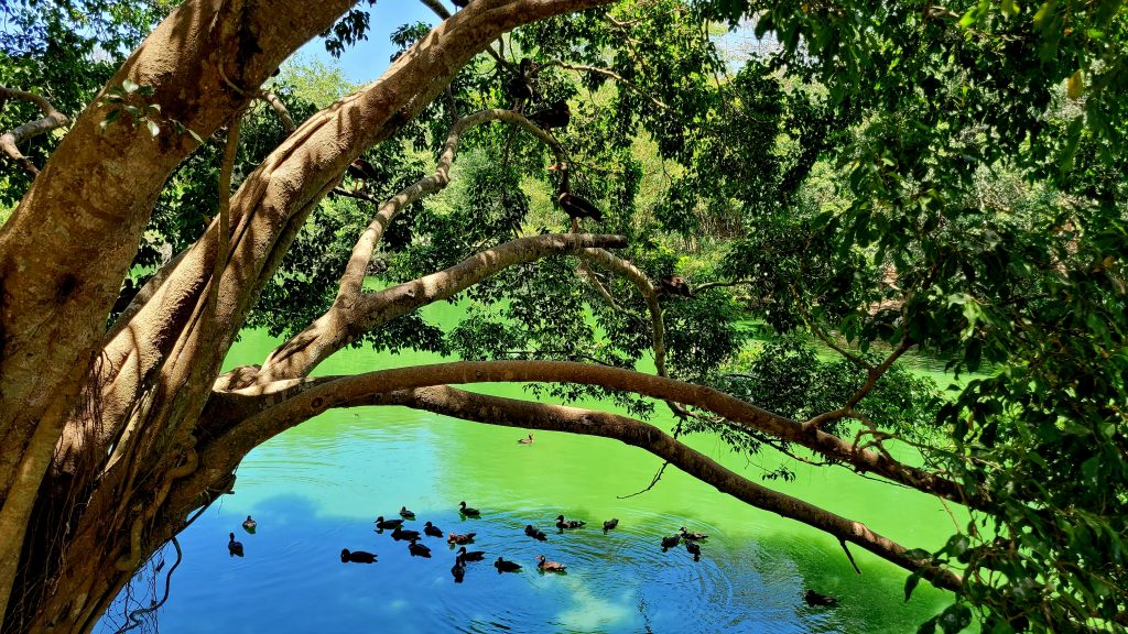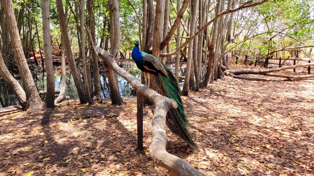 Im Öko-Naturreservat angekommen, macht es auf uns einen ansprechenden und einladenden Eindruck. Was wir dann aber zu sehen bekommen, verschlägt uns die Sprache. Wir hatten uns – der Ausflugsbeschreibung entsprechend – auf ein Gebiet gefreut, in dem wir nach einer Vielzahl einheimischer Vögel Ausschau halten werden und mit etwas Glück auch einige zu sehen bekommen. Stattdessen handelt es sich um einen Zoo für Vögel aller Art, kleine und große, die zu schätzungsweise 80 % in Volieren zur Schau gestellt werden. Nur ein kleiner Teil darf sich frei bewegen. Von diesen habe ich auch gerne Aufnahmen gemacht: