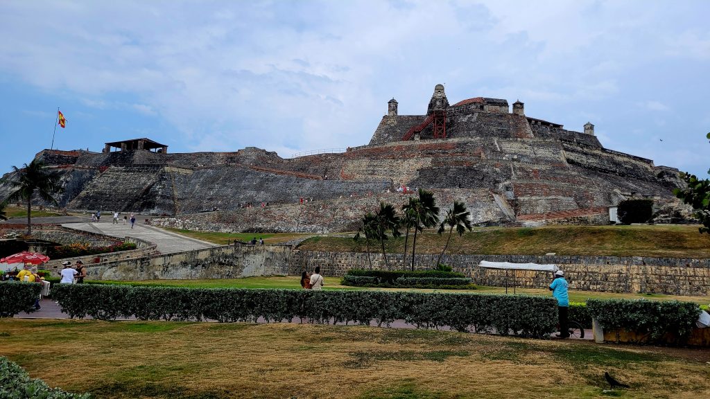 Auf der Rückfahrt halten wir noch für einen kurzen Fotostopp an der Festung San Felipe de Barajas. Das Castello wurde kurz nach der Gründung von Cartagena gebaut, um die Stadt, in der viel Gold und Silber gelagert wurde, vor Angriffen von Piraten und Invasoren zu schützen, was auch gelang.