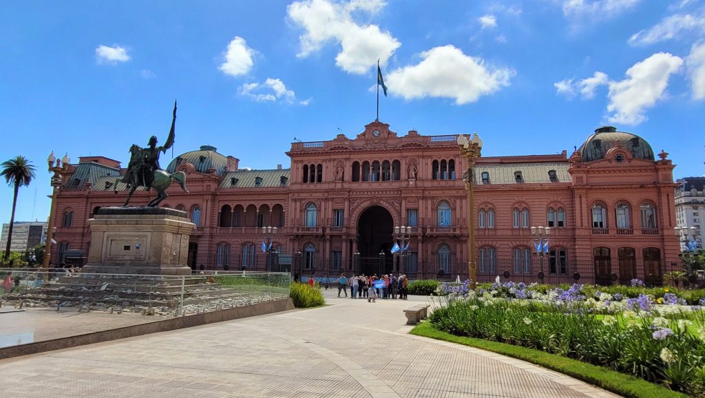Wir erkunden Buenos Aires zunächst weiter auf eigene Faust. Die Stadt ist untergliedert in verschiedene Stadtteile. Wir wohnen in San Telmo in unmittelbarer Nähe des Stadtzentrums. Hier befindet sich das Casa Rosada, Palast und Sitz des Regierungspräsidenten.