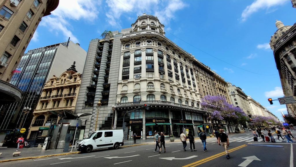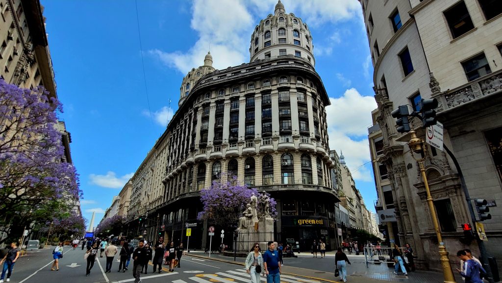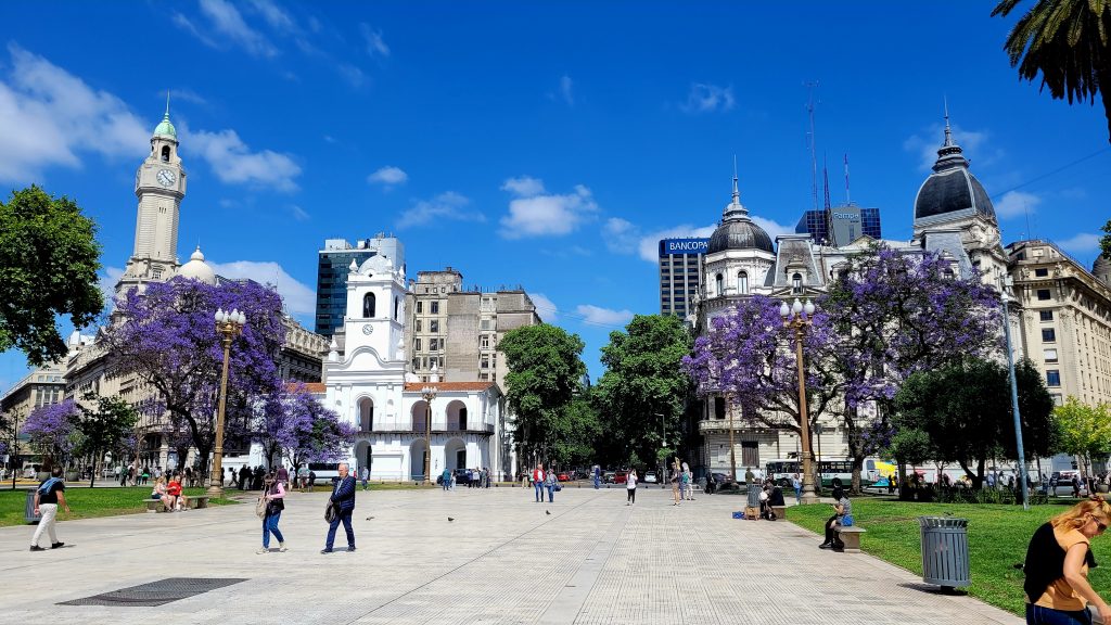 Der davor liegende Platz Plaza de Mayo (oberes Bild) mündet in die Presidentenallee, eine der wichtigsten Straßenzüge der Stadt. Von hier hat man einen direkten Blick zum Obelisken, dem Wahrzeichen der Stadt.