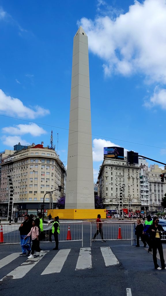 Am Ende der Straße sind wir am Obelisk auf dem Plaza de la Republika angekommen. Er ist DAS Wahrzeichen der Stadt und steht für Freiheit und Unabhängigkeit.
