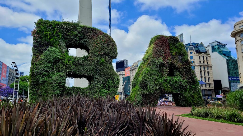 Direkt daneben bilden sich lange Menschenschlangen für ein Foto vor den beiden riesigen Buchstaben B und A für Buenos Aires.