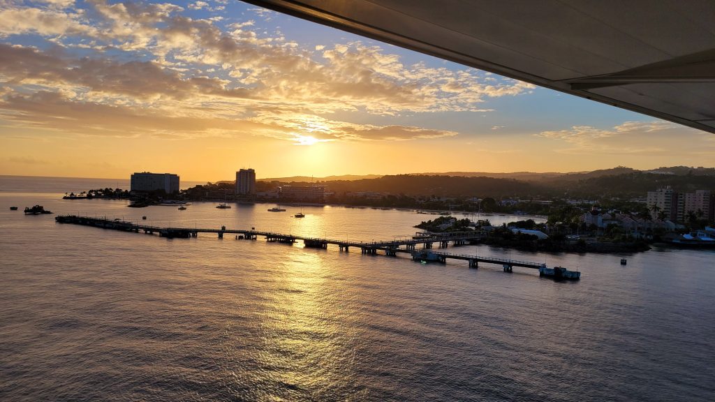Nach einer entspannten Nacht laufen wir zum Sonnenaufgang in Ocho Rios auf Jamaika ein.