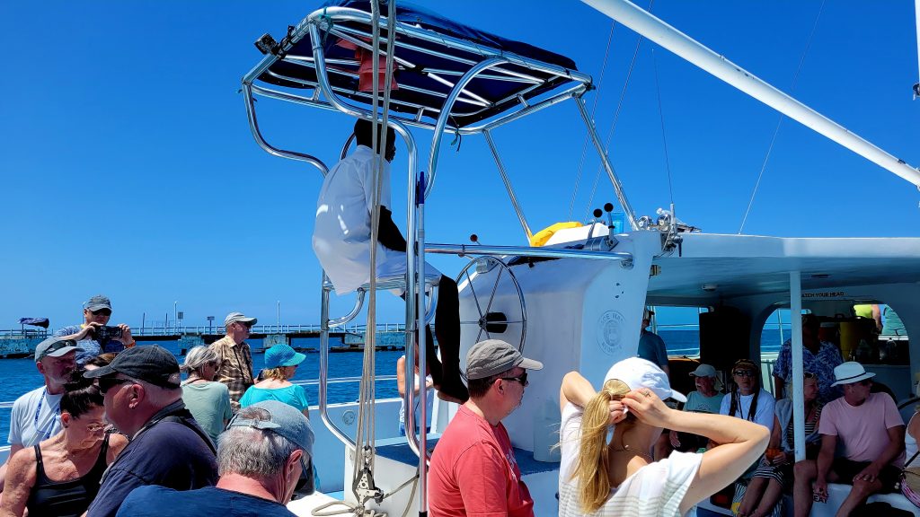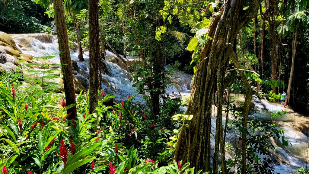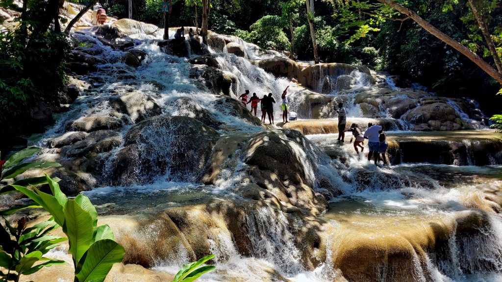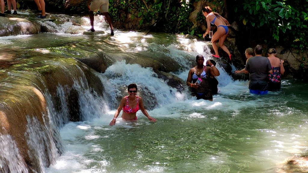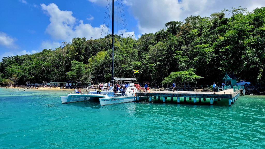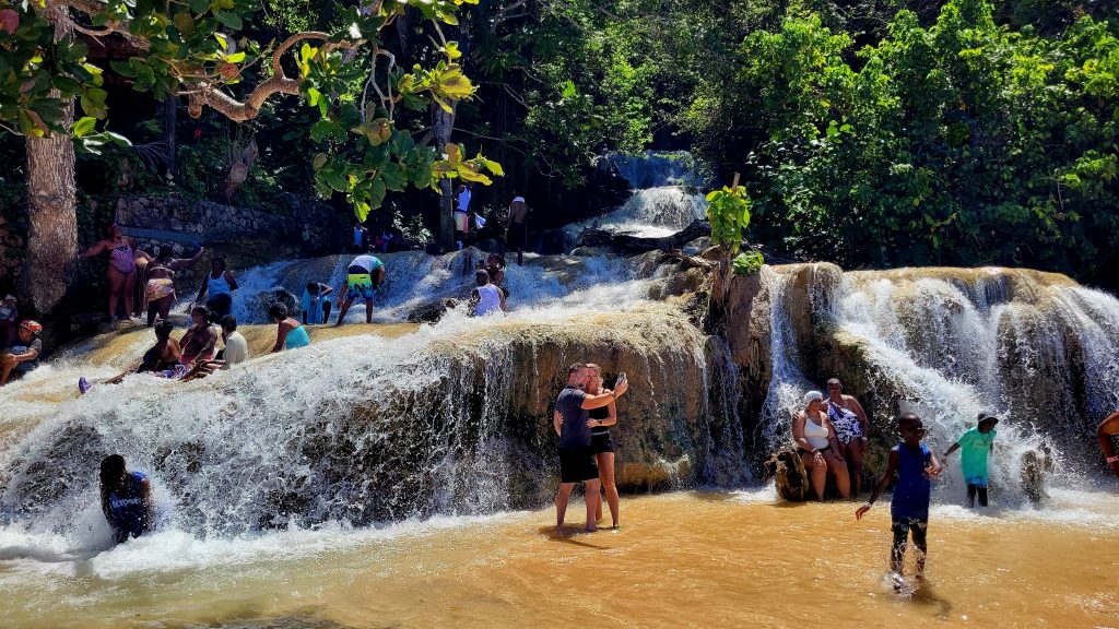 Am Nachmittag machen wir uns dann auf zu unserem gebuchten Ausflug. Eine fröhliche Katamaranfahrt zu den Dunn’s River Falls, die mit 200 m Höhe die berühmtesten Wasserfälle der Insel darstellen.