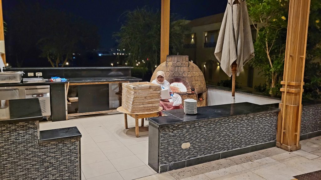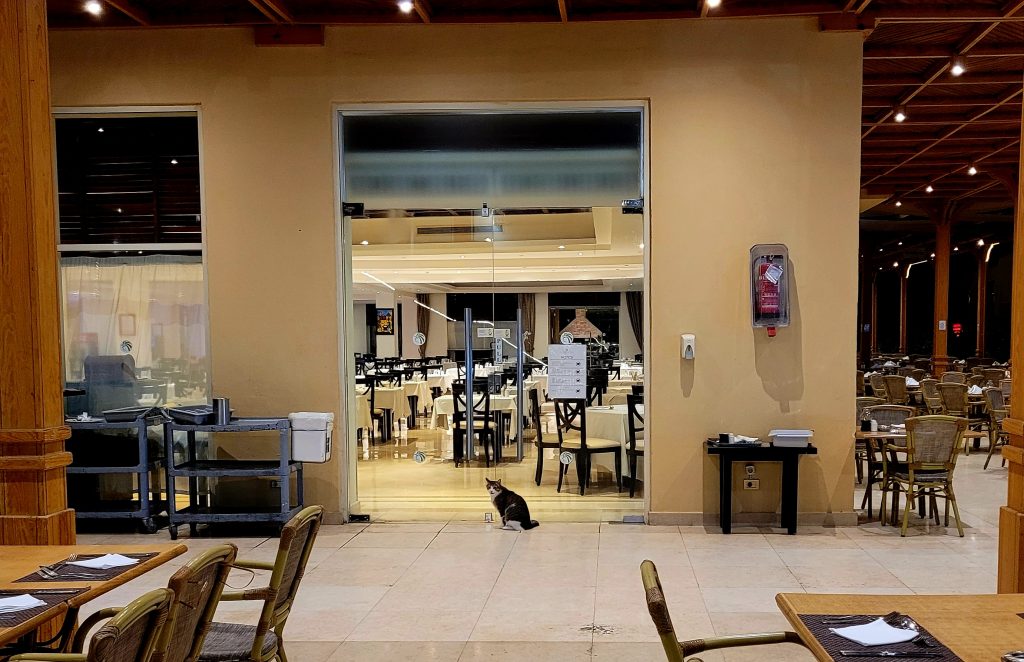 Auch die Hotelkatze freut sich schon auf das Abendessen