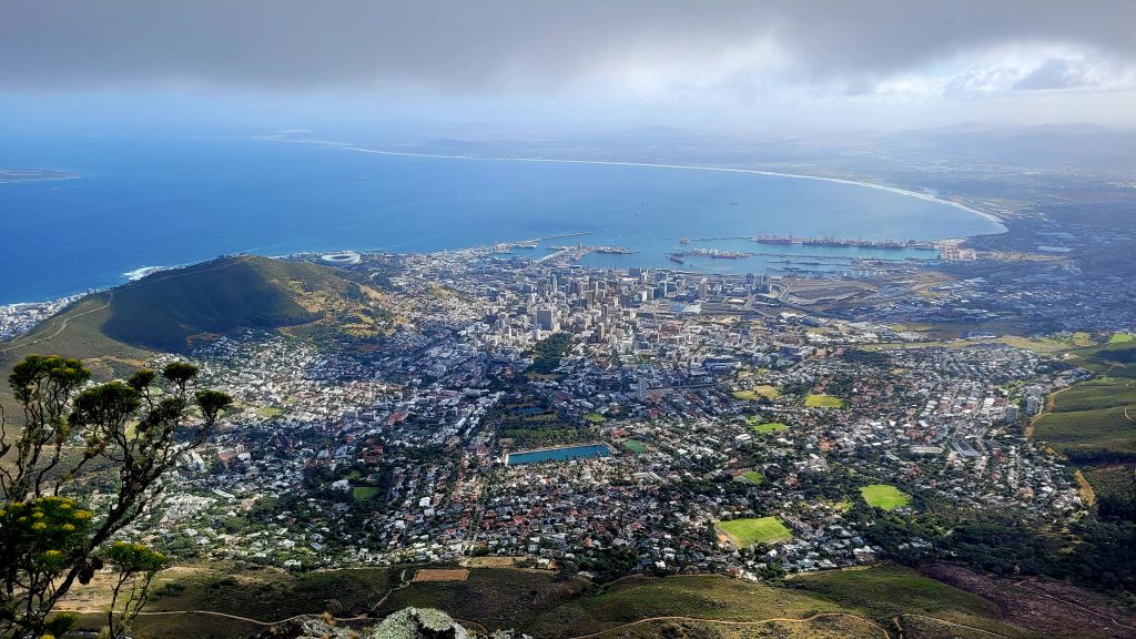 Geschafft! Über uns die Wolken und unter uns Kapstadt. Der Blick ins Tal ist unbezahlbar.