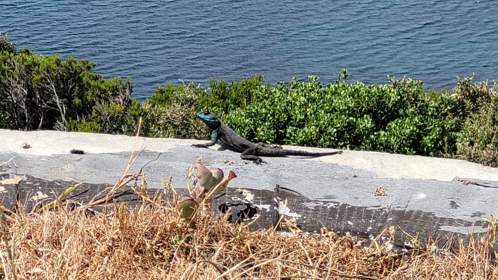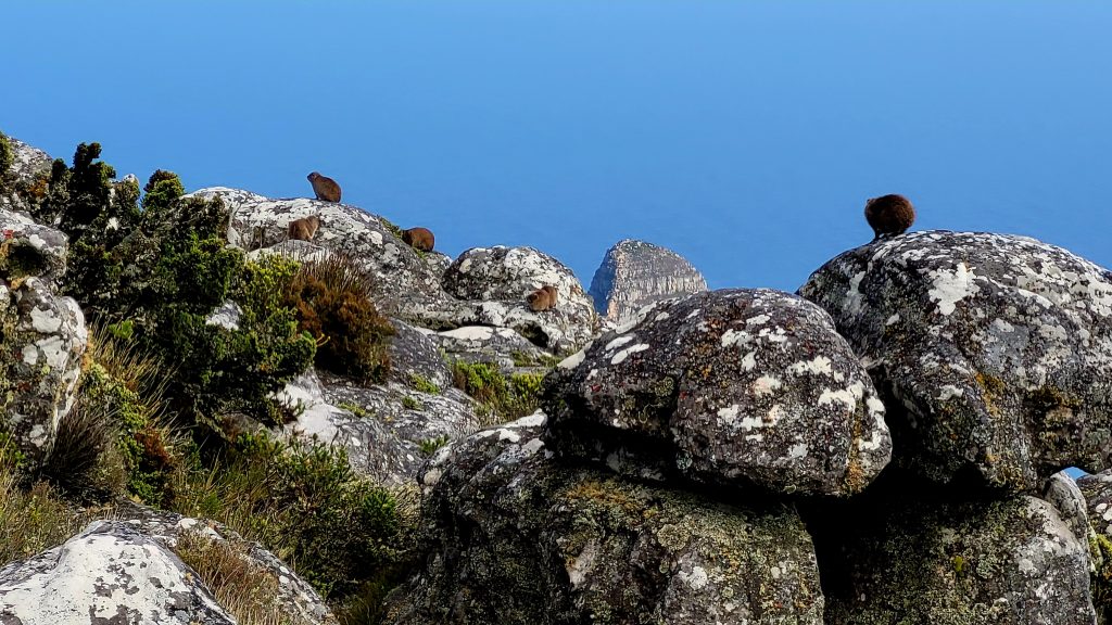 Auf den Felsen tummeln sich jede Menge Klippschliefer. Die kleinen putzigen Gesellen, die wir zunächst für Murmeltiere gehalten hatten, genießen ebenfalls die Sonne und lassen sich von uns nicht stören. Sie sehen zwar aus wie Murmeltiere, sind aber keine Nagetiere. Stattdessen sind sie eng mit den Elefanten verwandt, da sie dieselben Vorfahren haben. So haben sie z.B. auch kleine Stoßzähne.
