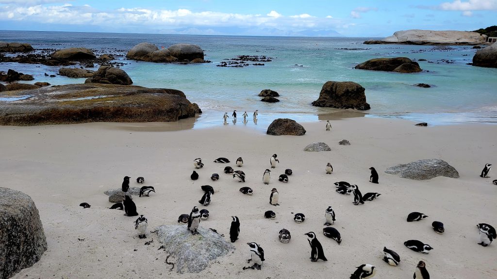 Wir fahren weiter. Unsere Route führt durch Simon’s Town, wo wir einen besonderen Stopp einlegen: Boulders Beach, die Heimat einer Brillenpinguin-Kolonie. Sie beherbergt eine einzigartige und gefährdete Landkolonie dieser afrikanischen Pinguine. Darauf, sie zu sehen, freuen wir uns sehr.