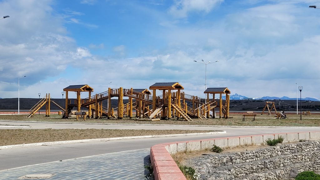 Irgendwo im nirgendwo erscheint dieser Spielplatz. Offenbar sind wir aber zu einer Zeit hier, wo er kaum genutzt wird. Schade, denn er ist toll.