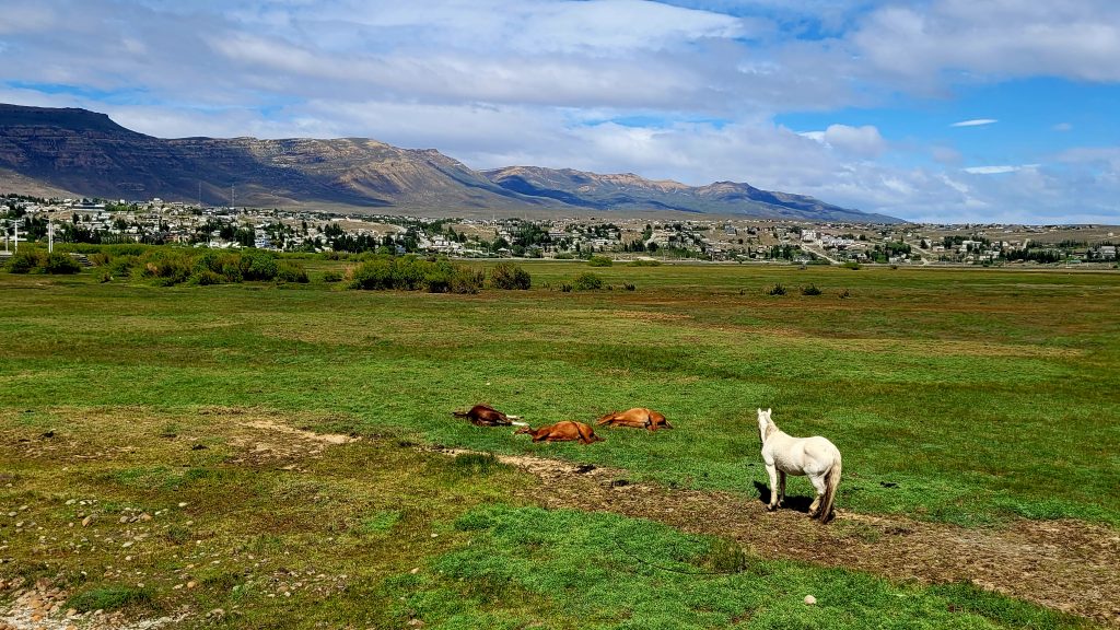 Etwas weiter treffen wir auf ein paar schlafende Pferde. Mit der dahinter liegenden Kulisse wirkt alles wunderbar friedlich und entspannt.