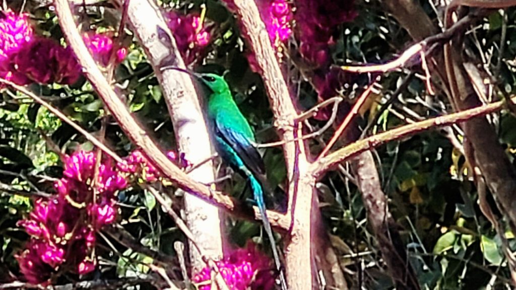 … und entdecken in einem leuchtend blühenden Baum wunderschöne Kolibris. Das ist so herrlich!