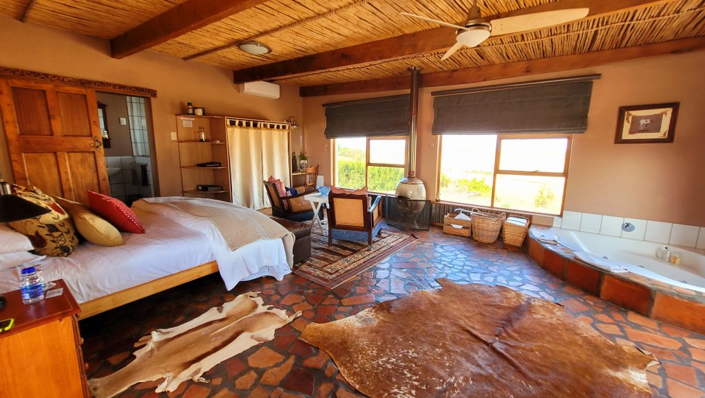 Am Nachmittag erreichen wir die Skeiding Farm bei Heidelberg, eine familiär geführte Unterkunft inmitten der malerischen Landschaft der Overberg-Region. Unser Gästehaus ist der Hammer und wir fühlen uns sofort wohl.